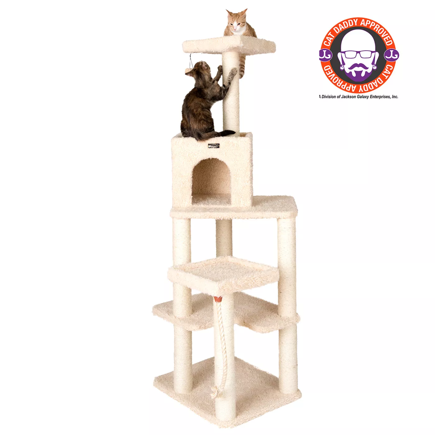 Cat Daddy approved by noted cat behaviorist Jackson Galaxy, Armarkat Model No. A6902 will be a welcome addition in the home of any cat. It features a swinging 100% cured sisal swinging rope, playhouse and multiple scratching posts for extra scratchability.