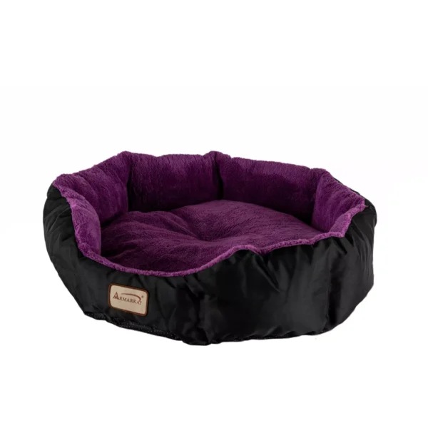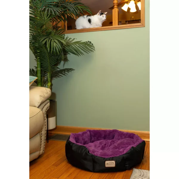 The Armarkat Large Soft Cat Bed is the perfect size for multiple kittens, or one cat who loves to stretch out. The plush fabric of this bed is ultra-soft mulberry velvet and black Oxford fabric, while its black and purple colors bring a pop of color to any room and look great no matter where you place it. The foam bolstered walls keep your cat cozy and feeling safe, and the thickness of the padding makes this a comfortable place to sleep, play, and lounge. The softness of the fabric will keep your cat coming back to spend time there. The notched opening makes it easy to enter and exit, no matter what the age of the cat.