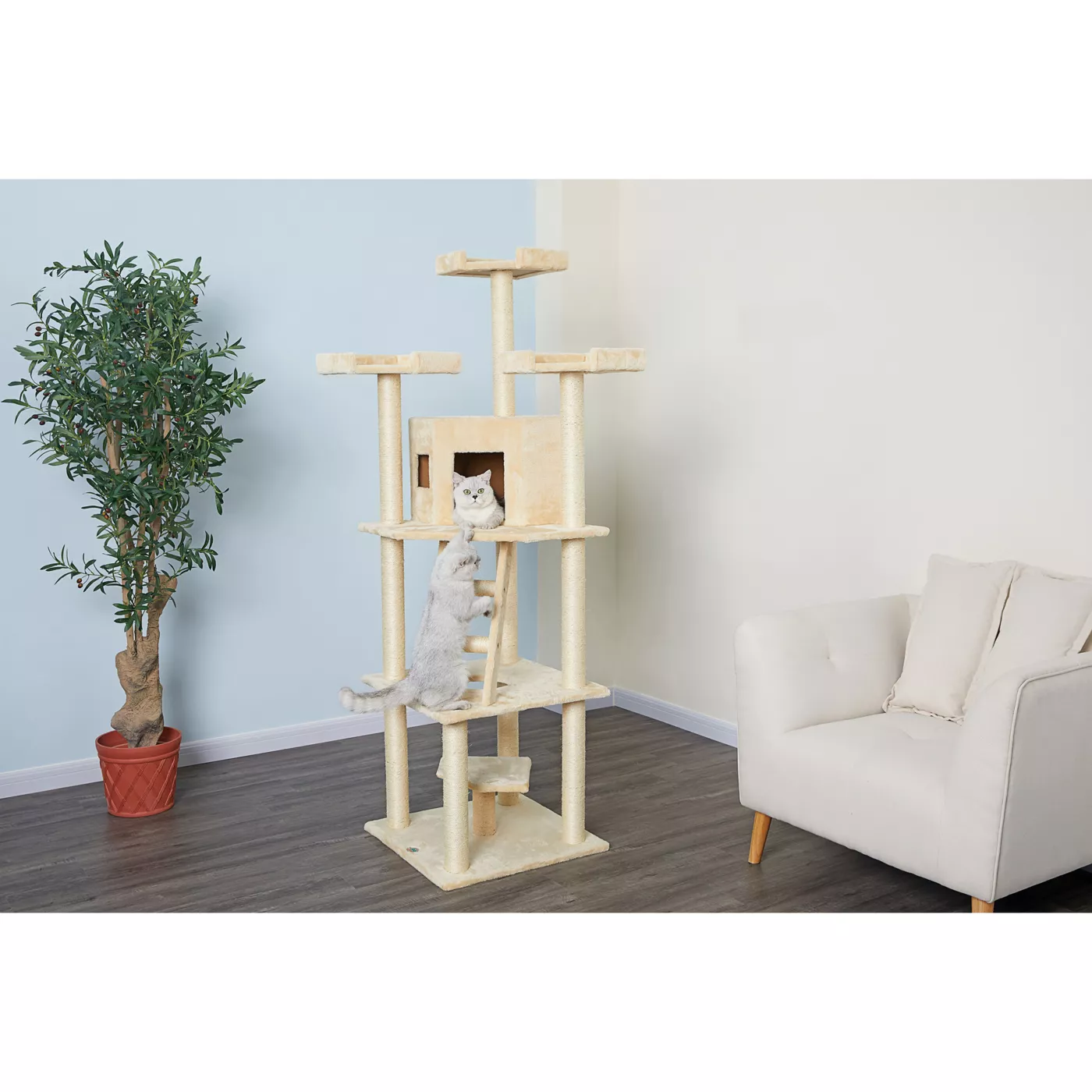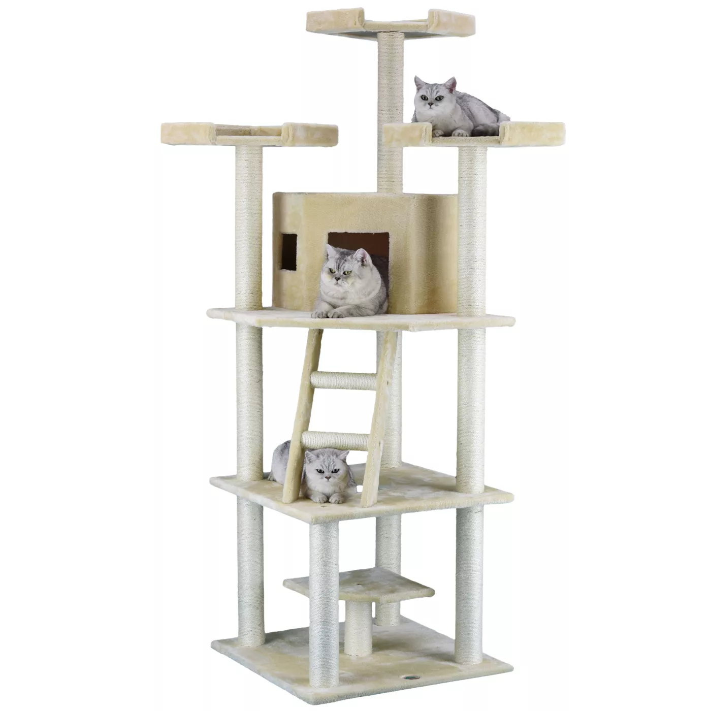 Cat Trees like this Go Pet Club 78-Inch Classic Beige Cat Tree House with Sisal Scratching Post are our specialty! Go Pet Club has built a reputation over 15 years to produce durable and reliable cat trees for everyday use. We source all of our materials responsibly to make sure we are using the highest quality of natural sisal rope and durable CARB Phase 2 Compliant MDF Boards. We pride ourselves with our reputation to bring happiness to cats and their loving parents.