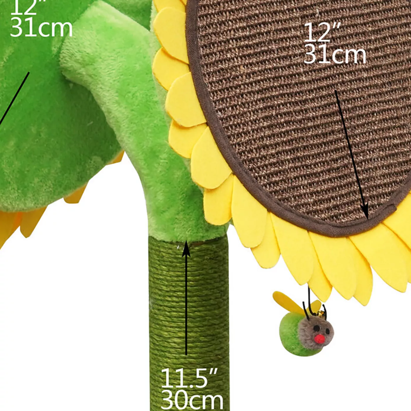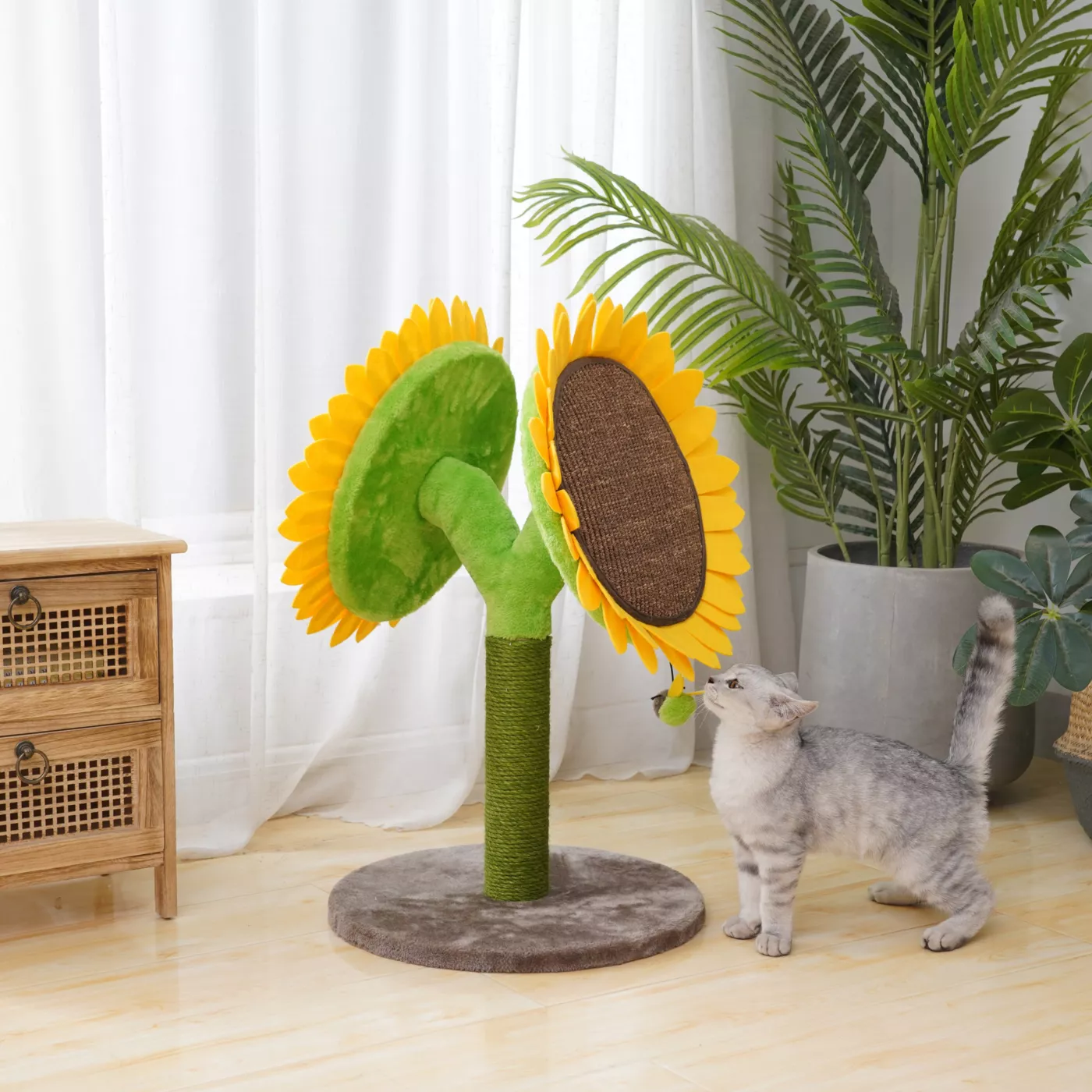 Includes: 2 sunflower shape cat scratching boards, 1 scratching post and 1 hanging toy